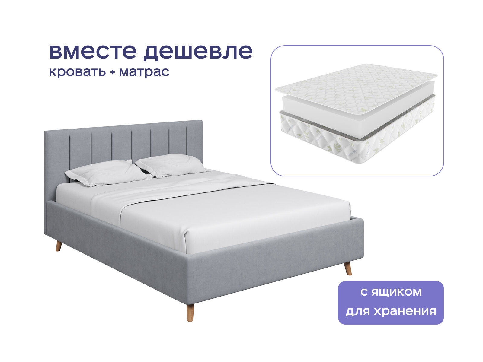 Комплект Амадора с подъемным механизмом + Мистер Слип Mono Line Стэнди — это симбиоз современного стиля и безупречного комфорта для вашей спальни. Кровать с изящными наклонными ножками не только добавляет изысканности интерьеру, но и обеспечивает практичность. А матрас-моноблок, подстраиваясь под анатомию тела, сохраняет правильное положение позвоночника. Приобретая набор, вы экономите до 36%. Превратите спальню в пространство, где эргономика, эстетика и здоровый сон сочетаются без компромиссов.