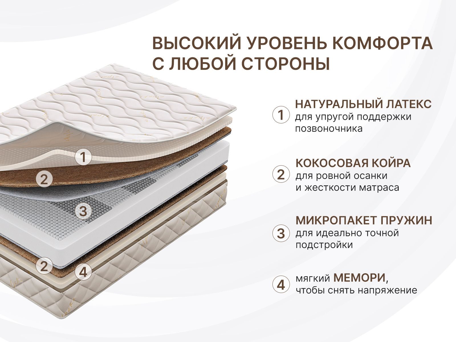 Модель воплощает идеальный баланс мягкости и поддержки, используя элитные материалы и ультрасовременный пружинный блок. Модель позволяет ощутить эффект «объятий» Мемори или приятную упругость латекса.