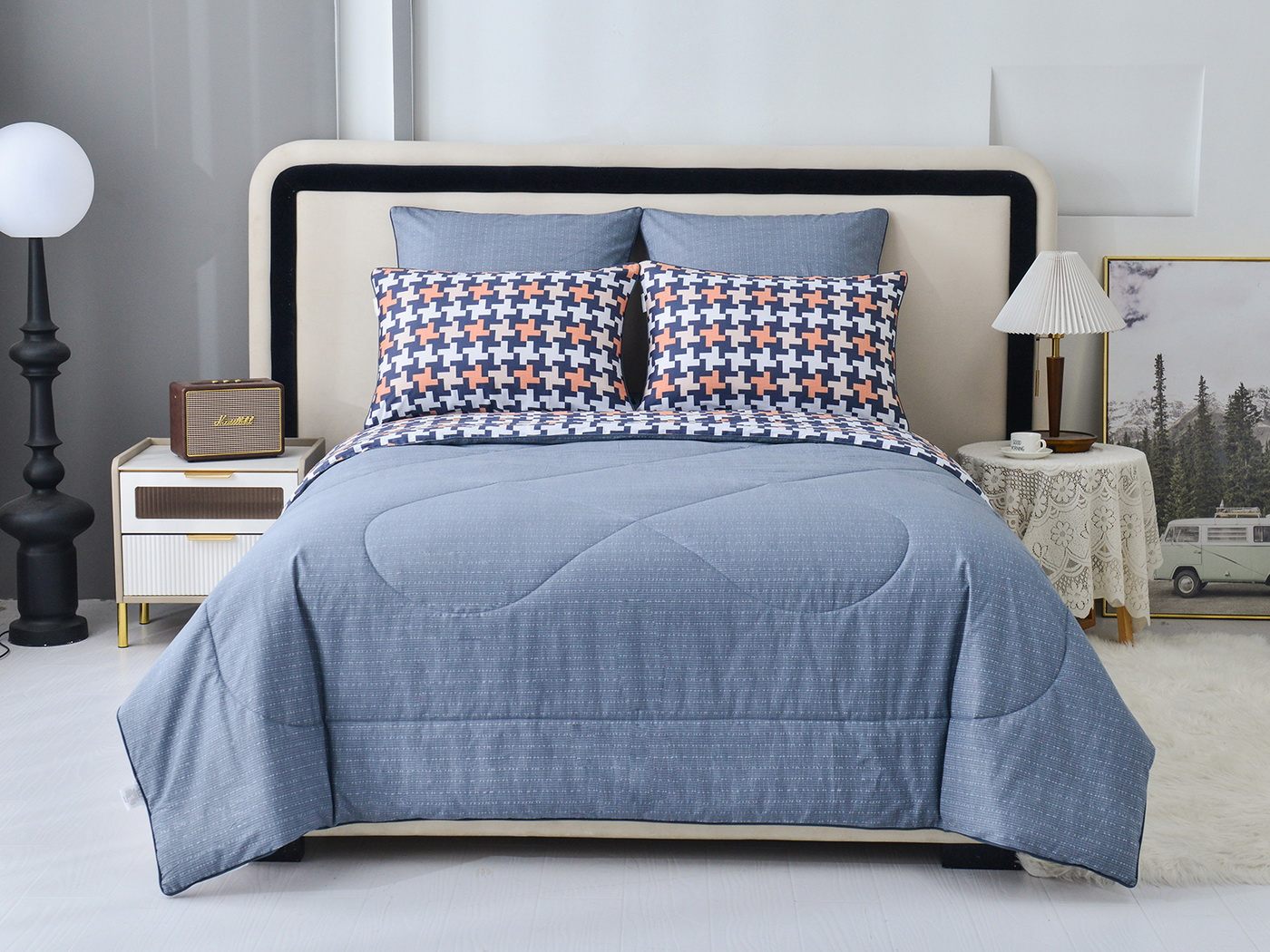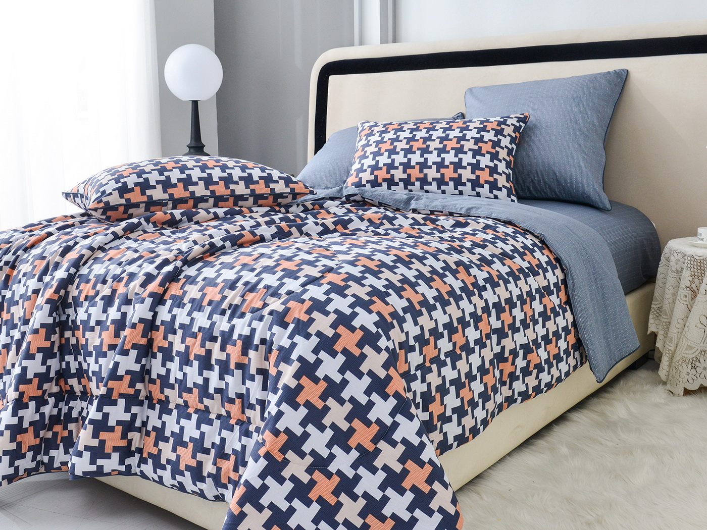 Особенность: двусторонняя модель, наволочки и одеяла декорированы кантом.