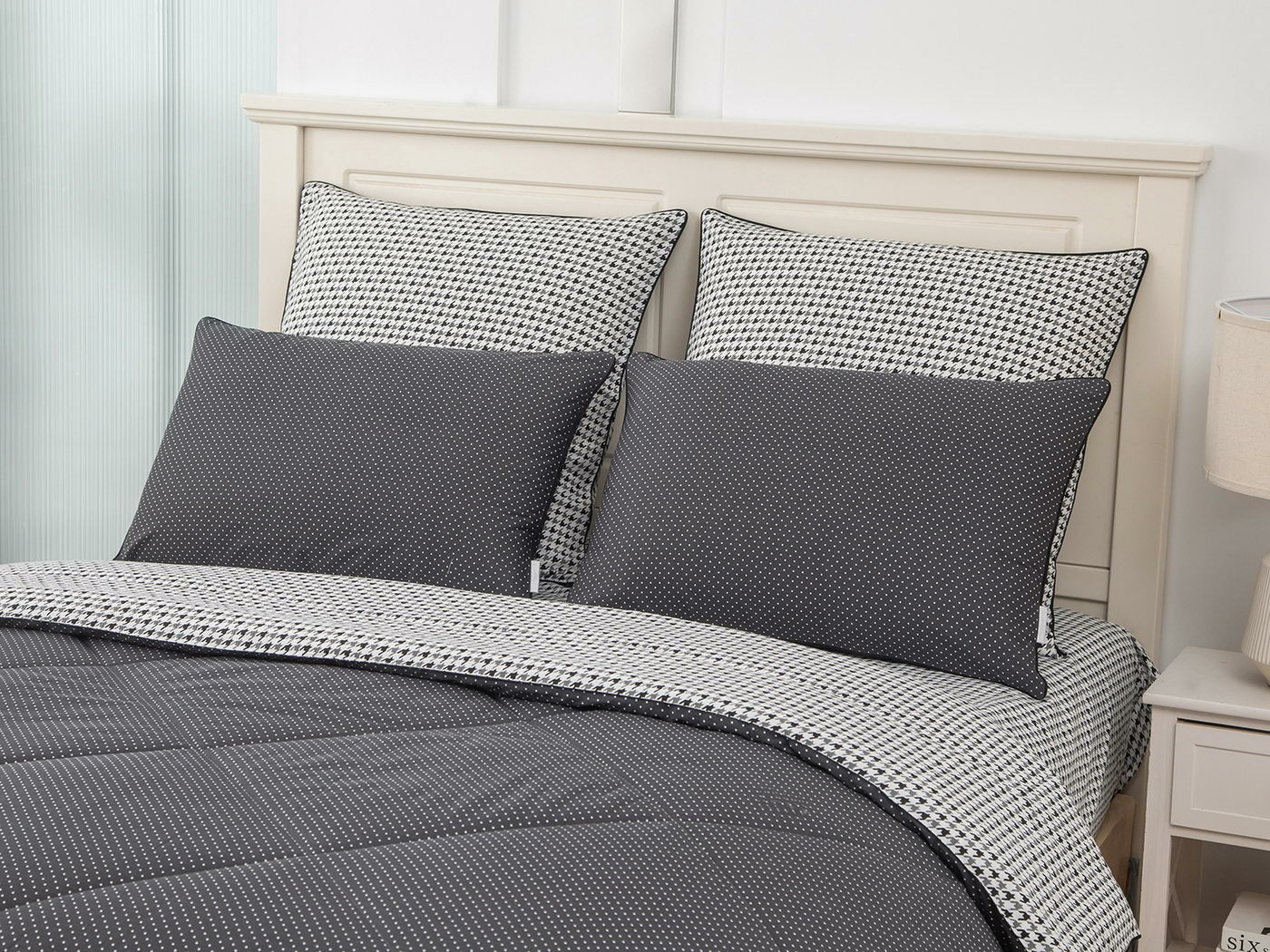 Особенность: двусторонняя модель, наволочки и одеяла декорированы кантом.