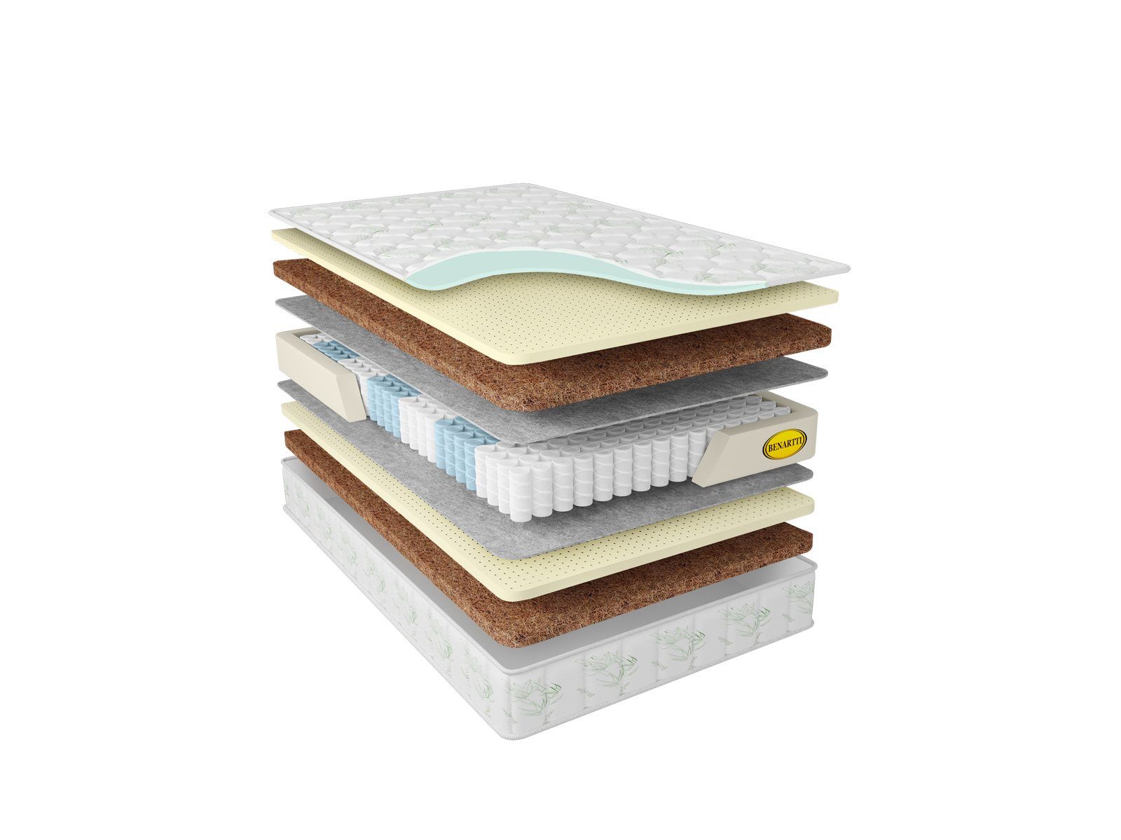 Также в состав матраса включены и специальные наполнители, которые не просто продолжают, но усиливают работу S1200. Слои кокоса и натурального латекса установлены с каждой из сторон, однако их пропорции отличаются. Благодаря этому матрас приобрёл высокий и средний уровни жёсткости. Их можно менять, просто перевернув изделие. Для этого по бокам модели предусмотрены удобные ручки. Натуральный латекс обеспечивает анатомичную и более мягкую поверхность матраса, а кокосовая койра даёт высокую жёсткость и выраженную поддержку для позвоночника.