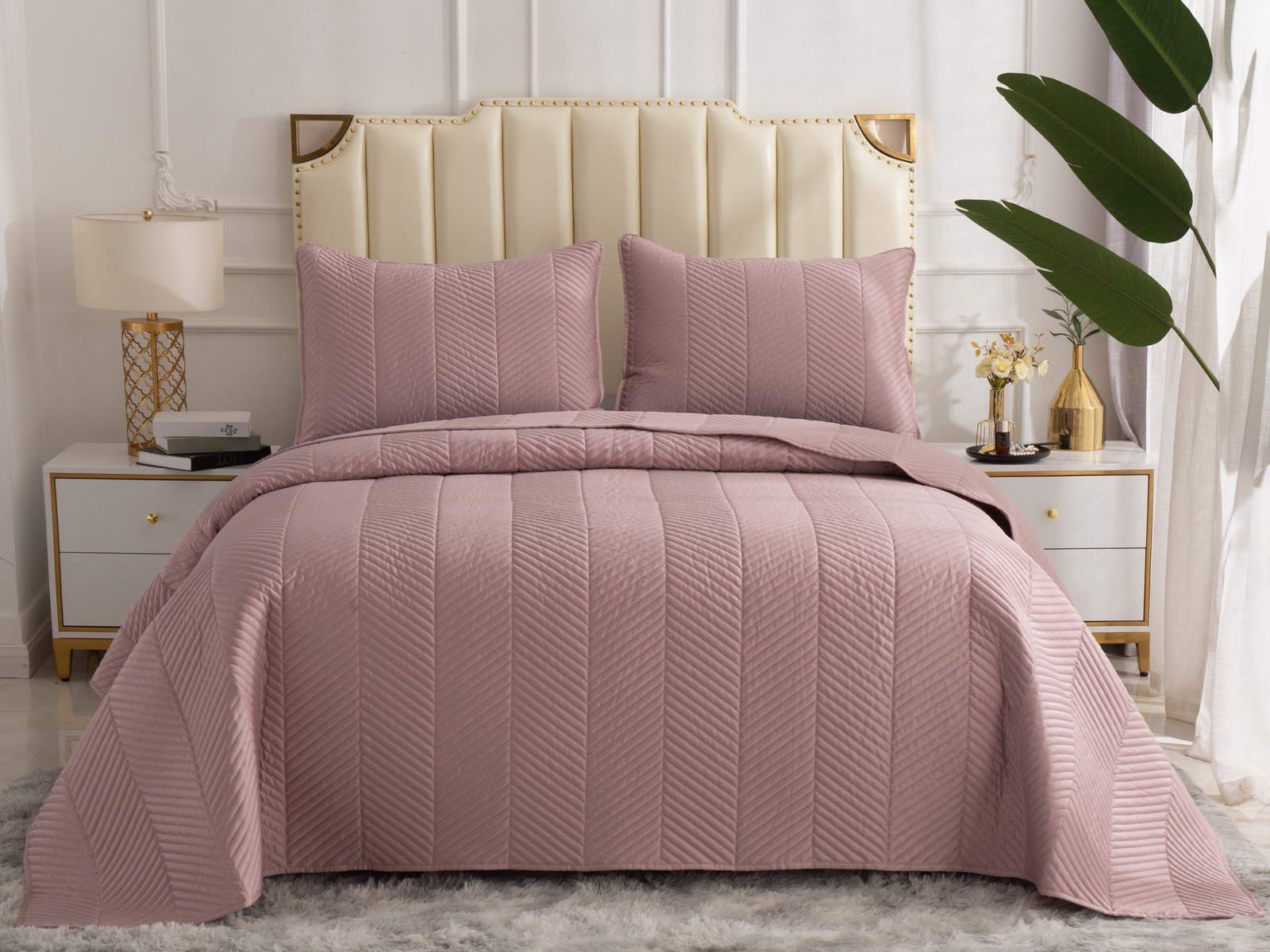 Стёганое дышащее покрывало Адонис на 70% состоит из хлопка и на 30% из вискозы. Ткань изделия гладкая и приятная на ощупь. Декоративный кант и ритмичный «елочный» рисунок, выступающий над поверхностью, придают покрывалу игривый утонченный вид.