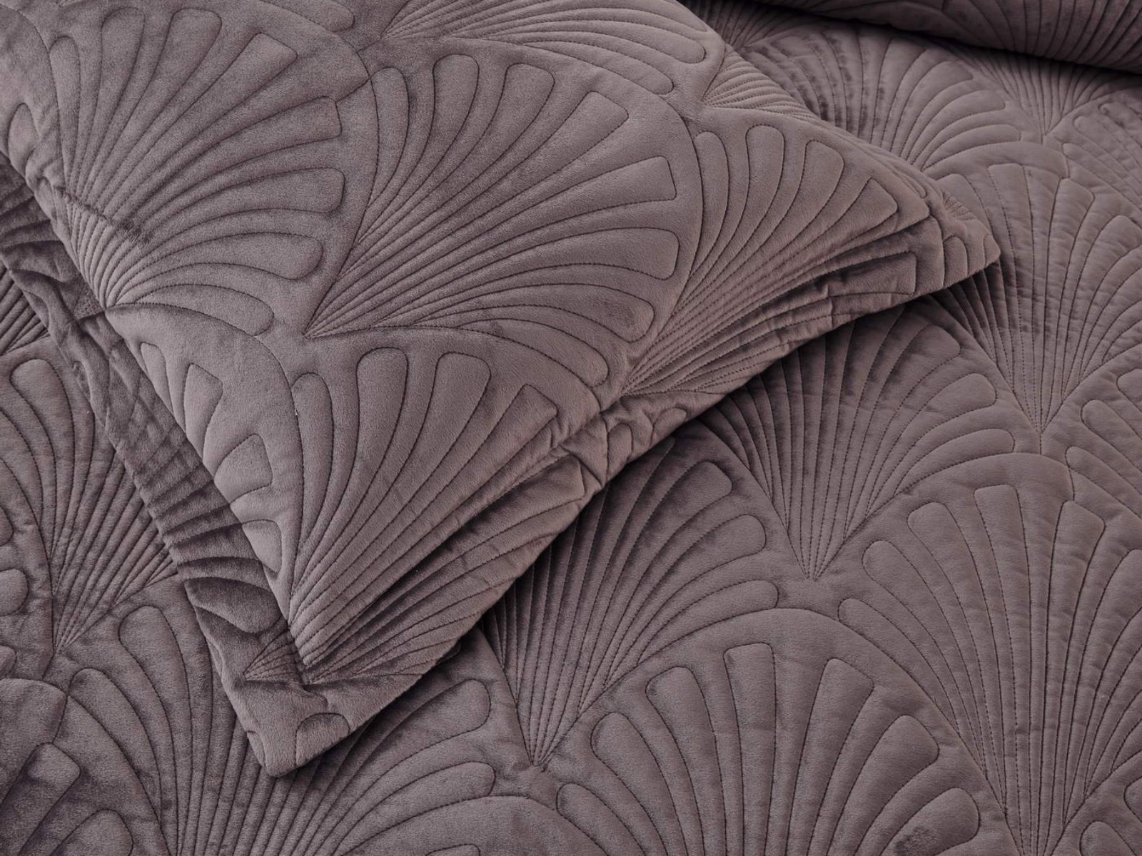 Роскошное велюровое покрывало Ариэль станет изюминкой любого интерьера, ведь оно потрясающе выглядит и приятное на ощупь. Обратите внимание на стежку покрывала – она выполнена в виде ракушек с эффектом 3D. Из-за особого плетения, велюровая ткань покрывала отражает свет и красиво переливается при различном освещении.