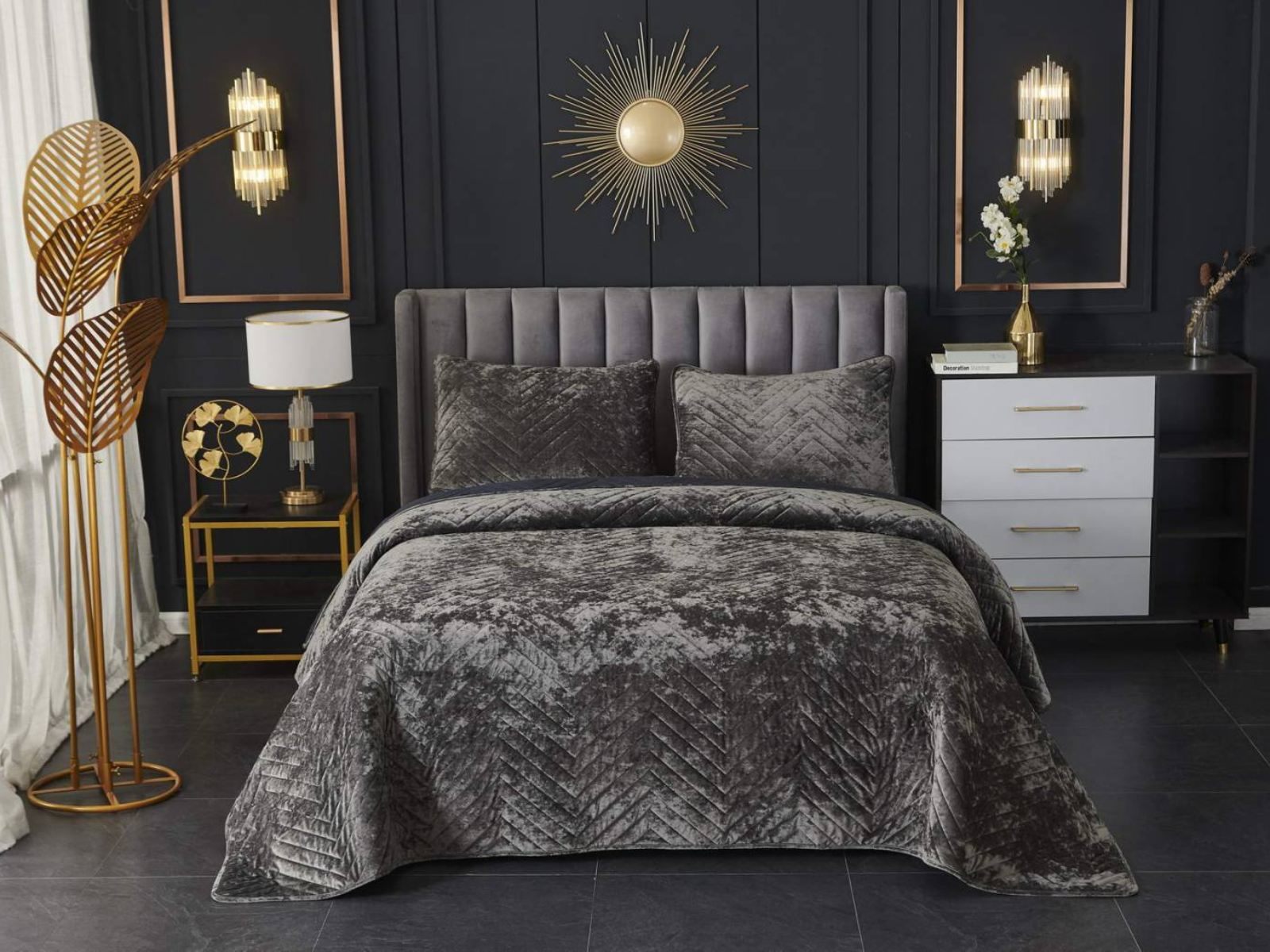 Покрывала Фернанд выглядят как будто сошли с картин, изображающих королевские покои. Бархатную ткань начали изготавливать еще в Средние века, её использовали в оформлении дворцов и изготавливали плащи и головные уборы для знати. Теперь и вы можете прикоснуться к этой роскоши! Бархатная текстура приятная на ощупь, а из-за особого плетения ткани, игра света на ней выглядит благородно. Поэтому покрывало Фернанд создаст необычайно уютную атмосферу в вашей спальне. Цветовая гамма разнообразна и включает восемь благородных оттенков: капучино, бежевый, изумруд, горчичный, терракотовый, пепельная роза, серый, стоун. За покрывалом Фернанд легко ухаживать: стирка при температуре 30 градусов, вручную или в машинке. Важно хорошо просушить изделие! При правильном уходе вещь прослужит долгие годы не потеряв форму и цвет.